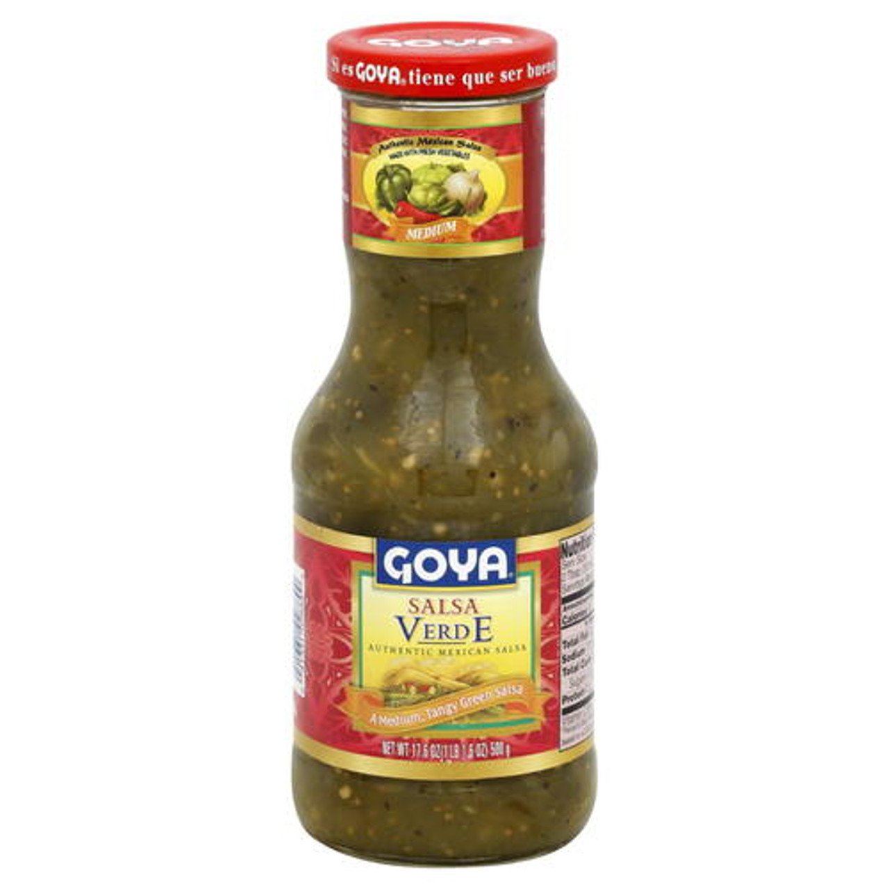 Esta tradicional salsa mexicana, la combinación perfecta entre tomatillos, chiles jalapeños, cebolla y cilantro, viene preparada para acompañar todas tus recetas preferidas. Nuestra Salsa Verde Goya, tiene un sabor medio picante, perfecta para realzar los sabores de tus tacos, quesadillas, enchiladas y fajitas